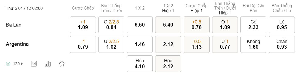 Soi kèo tài xỉu Ba Lan vs Argentina: 0.84*2/2.5*1.02