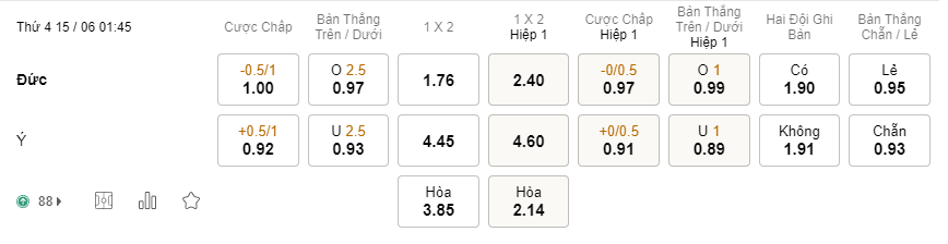 Soi kèo hiệp 1 Đức vs Ý: 0.97*0/0.5*0.91