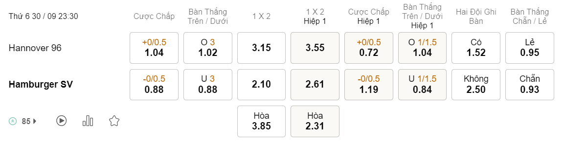 Soi kèo hiệp 1 Hannover vs Hamburg: 0.72*0/0.5*1.19