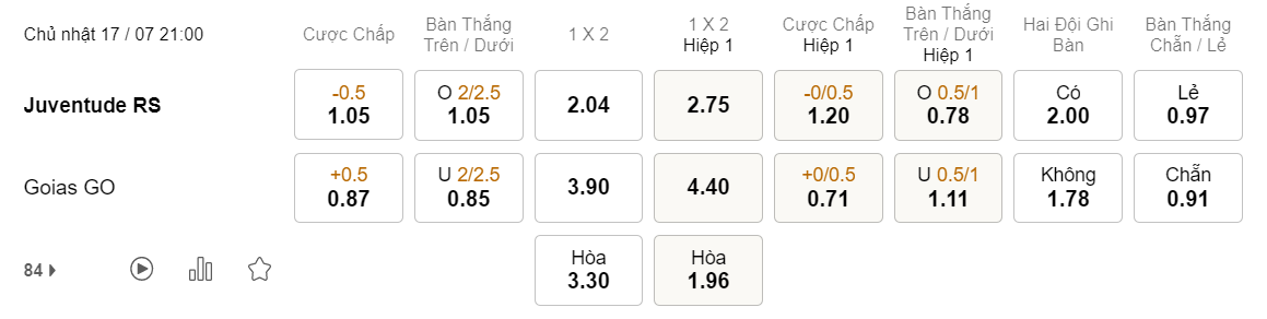 Soi kèo tài xỉu Juventude vs Goias: 1.05*2/2.5*0.85