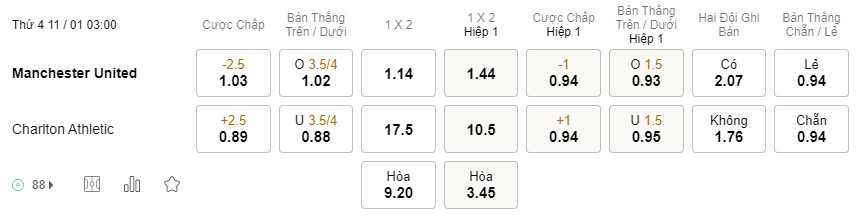 Soi kèo hiệp 1 MU vs Charlton: 0.94*1*0.94