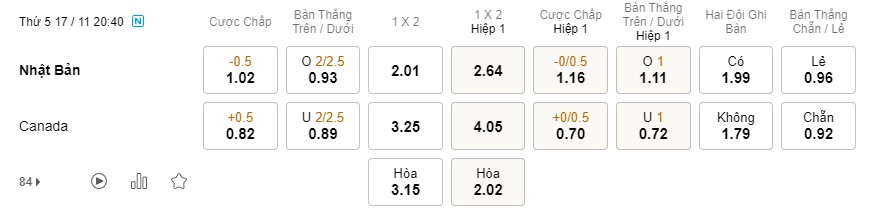 Soi kèo châu Á Nhật Bản vs Canada: 1.02*0.5*0.82