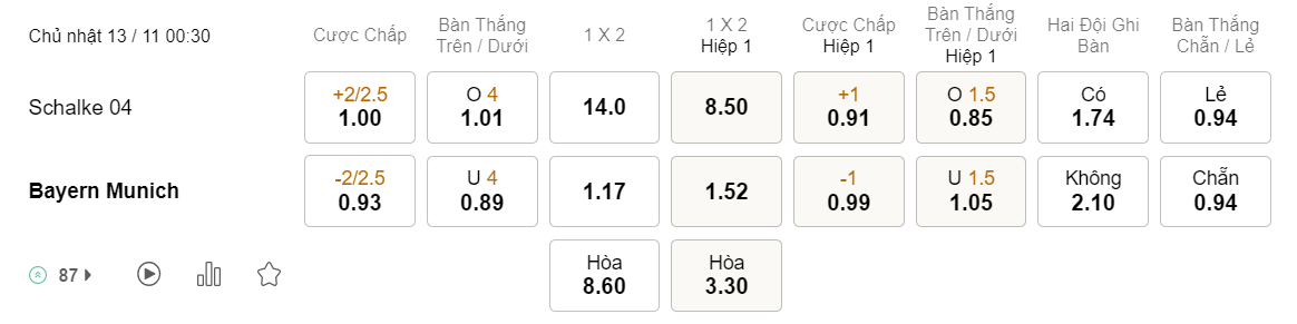 Soi kèo châu Á Schalke vs Bayern: 1.00*2/2.5*0.93